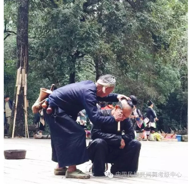岜沙苗族位于从江县月亮山麓寨子里,部落的寨民依旧保留古老的传统习俗——男人成人礼镰刀剃头仪式。