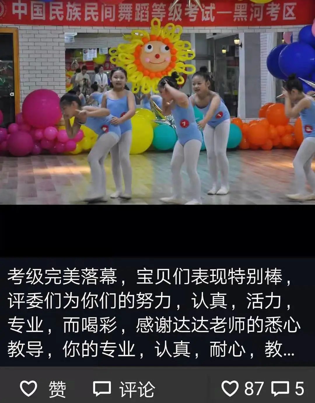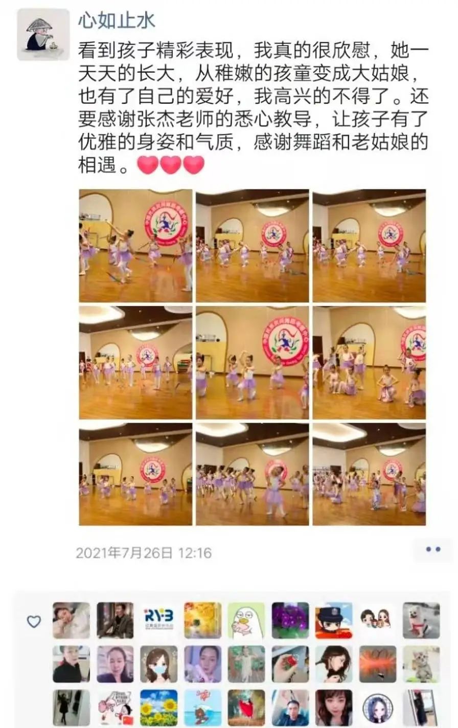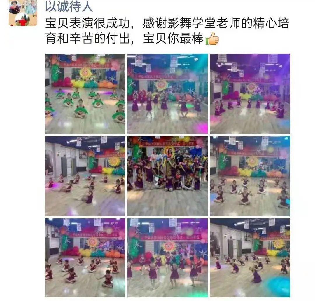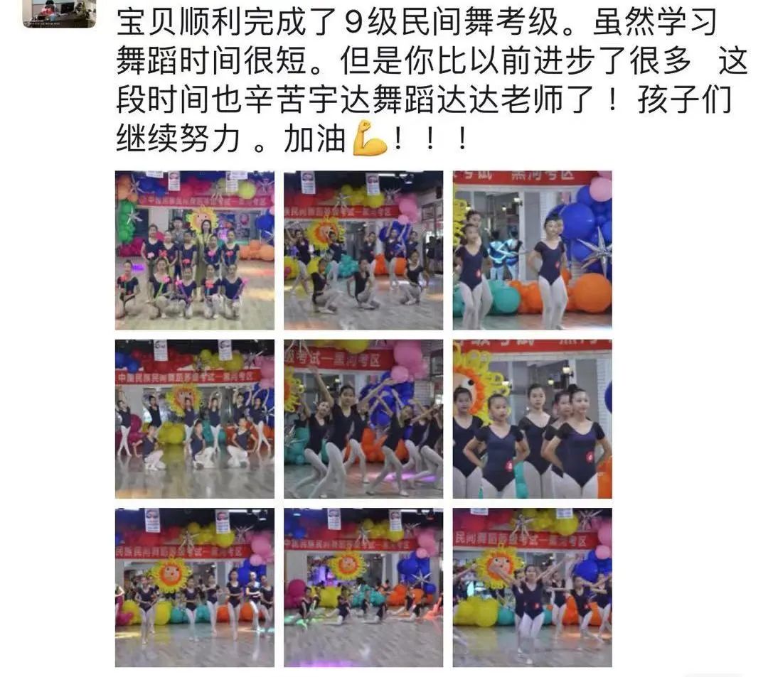 从不会穿舞蹈鞋,到现在可以独立站在舞台上完成演出,我很欣慰。感谢老师的付出与陪伴,一级到现在的十级,切实的看到了孩子的成长,树立了孩子的自信心,同时也体会到了团队的凝聚力。