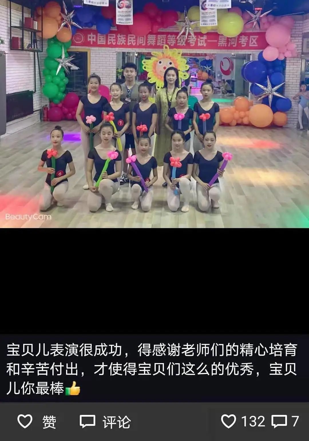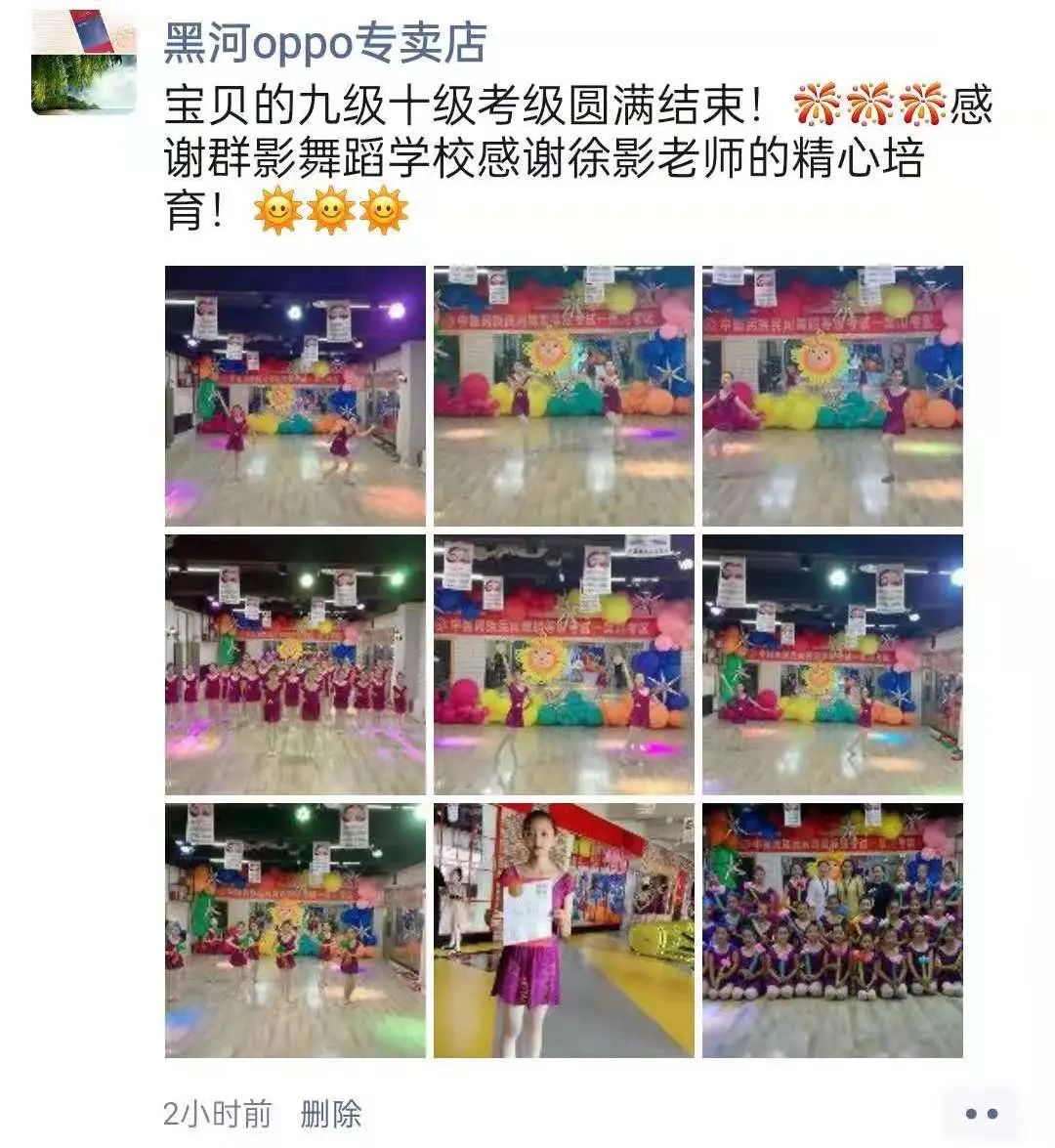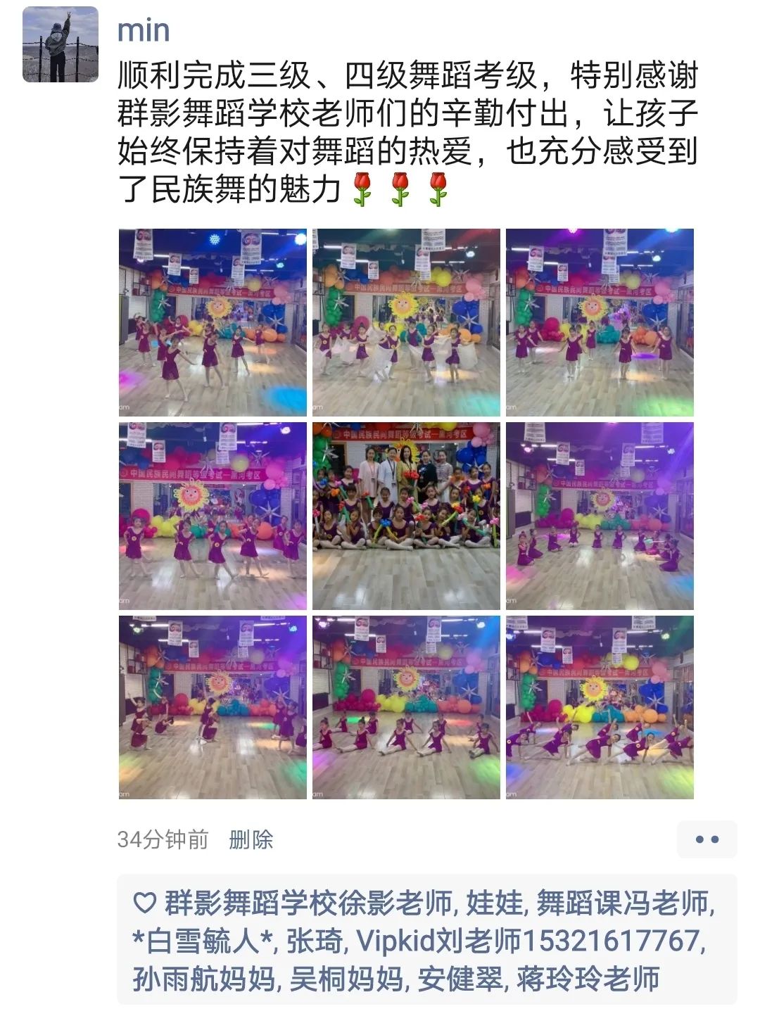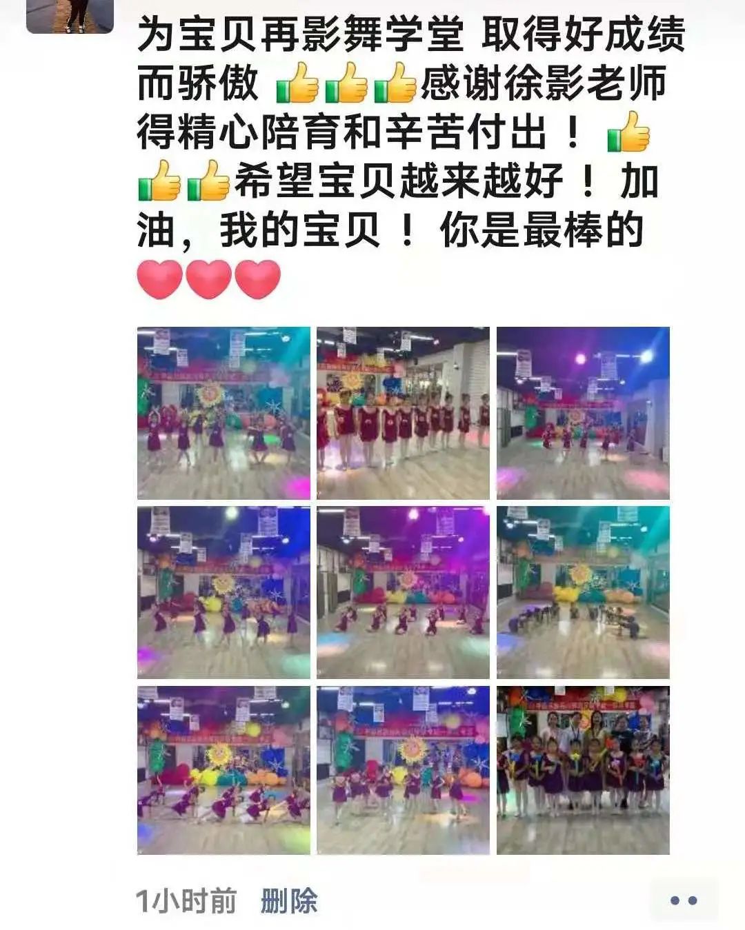 从不会穿舞蹈鞋,到现在可以独立站在舞台上完成演出,我很欣慰。感谢老师的付出与陪伴,一级到现在的十级,切实的看到了孩子的成长,树立了孩子的自信心,同时也体会到了团队的凝聚力。